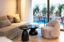 A comfortable king-size bed with a high-quality mattress and luxurious linens and a sofa-bed, a modern bathroom with a walk-in shower and premium toiletries. Complimentary Wi-Fi, a Nespresso coffee machine, a kettle and a coffee set for refined moments. Plush bathrobes and slippers add extra comfort, along with a furnished private terrace with direct access to the pool.