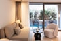 The Deluxe Triple Rooms with Heated Swim Up Pool are located on the ground floor of the hotel’s main building, offering direct access to the pool, creating a cool and serene atmosphere. The thoughtful design and natural shade provided by the architecture make this room the ideal choice for those seeking a cool space and relaxation throughout the day.
